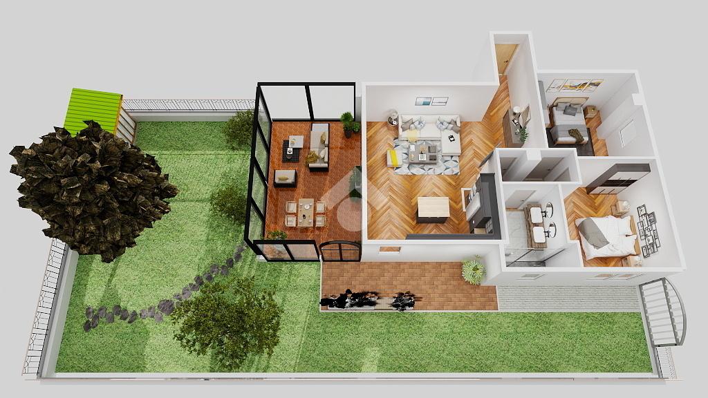All'interno vi è la possibilità di creare due camere da letto che garantiscono comfort e privacy ed un soggiorno con angolo cottura e una veranda esterna che rappresenta uno spazio ideale per momenti di relax e convivialità.