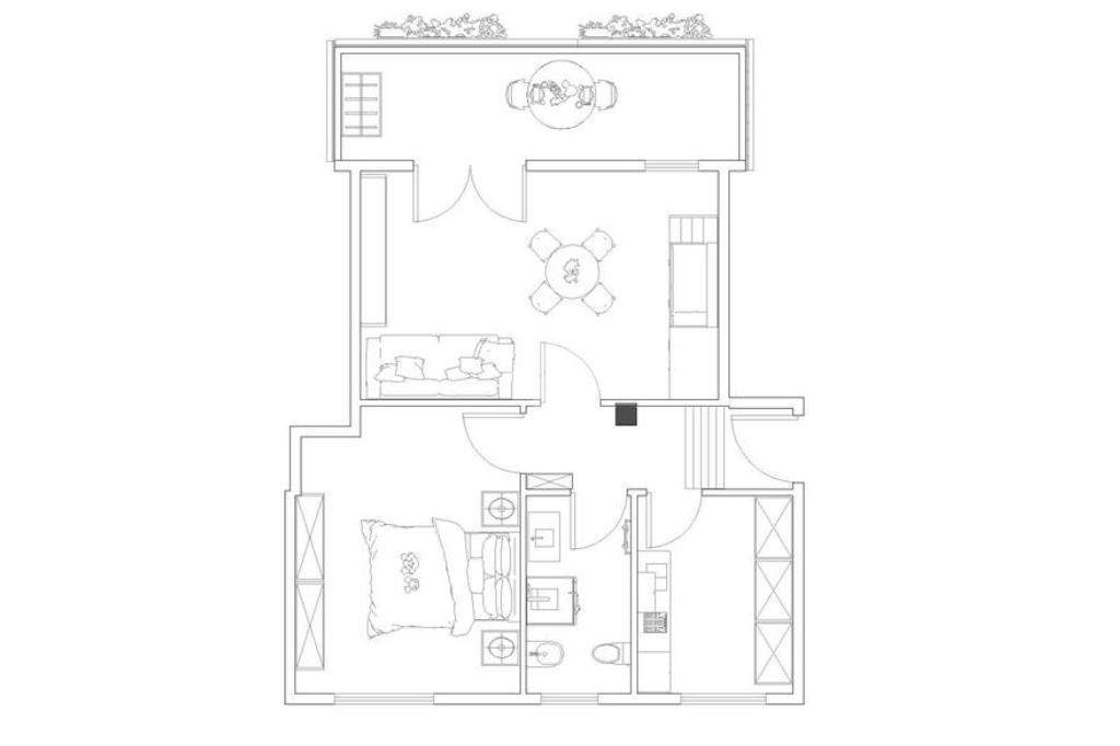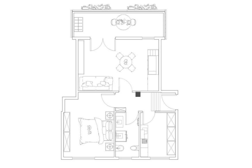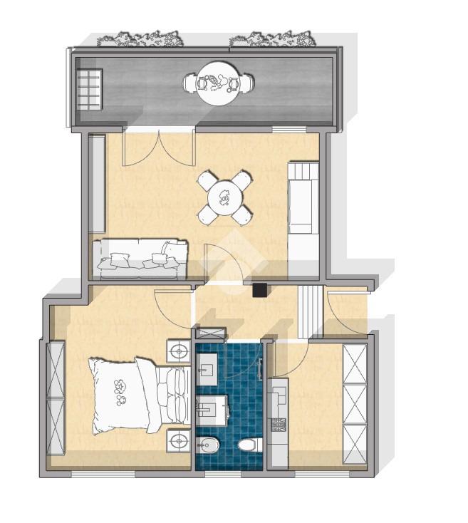 L'alloggio è composto da ingresso, cucina, soggiorno con uscita sul balcone vivibile, camera da letto e bagno finestrato.
