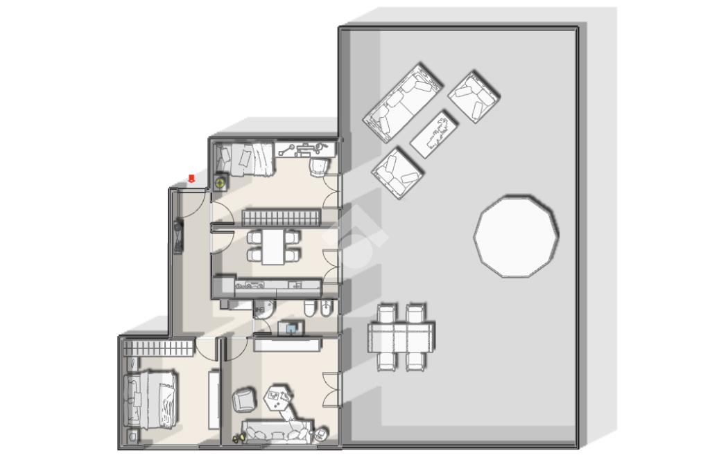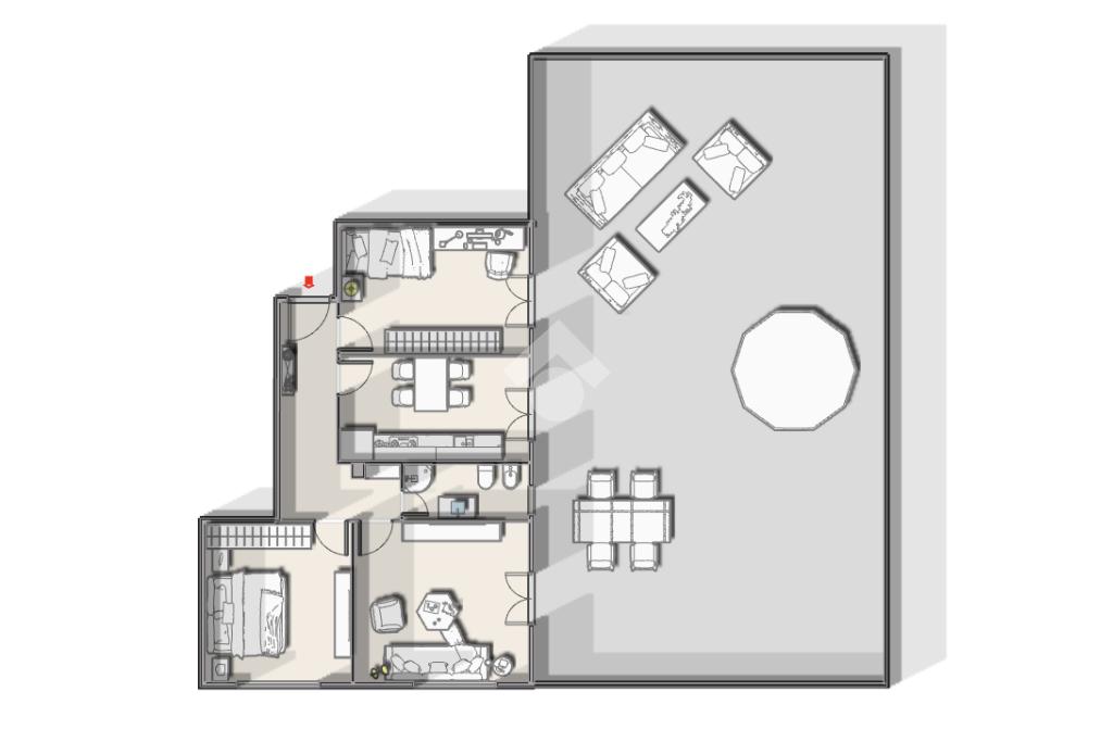 Uno dei punti di forza è senza dubbio la luminosità: ogni ambiente gode dell’accesso diretto al grande terrazzo, creando una continuità unica tra interno ed esterno e valorizzando al massimo la vivibilità della casa.
