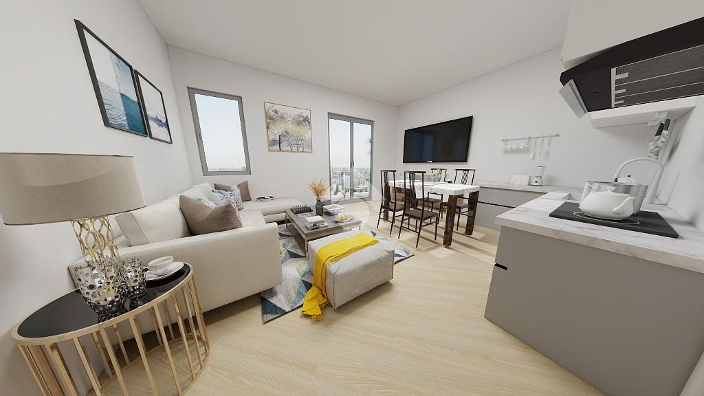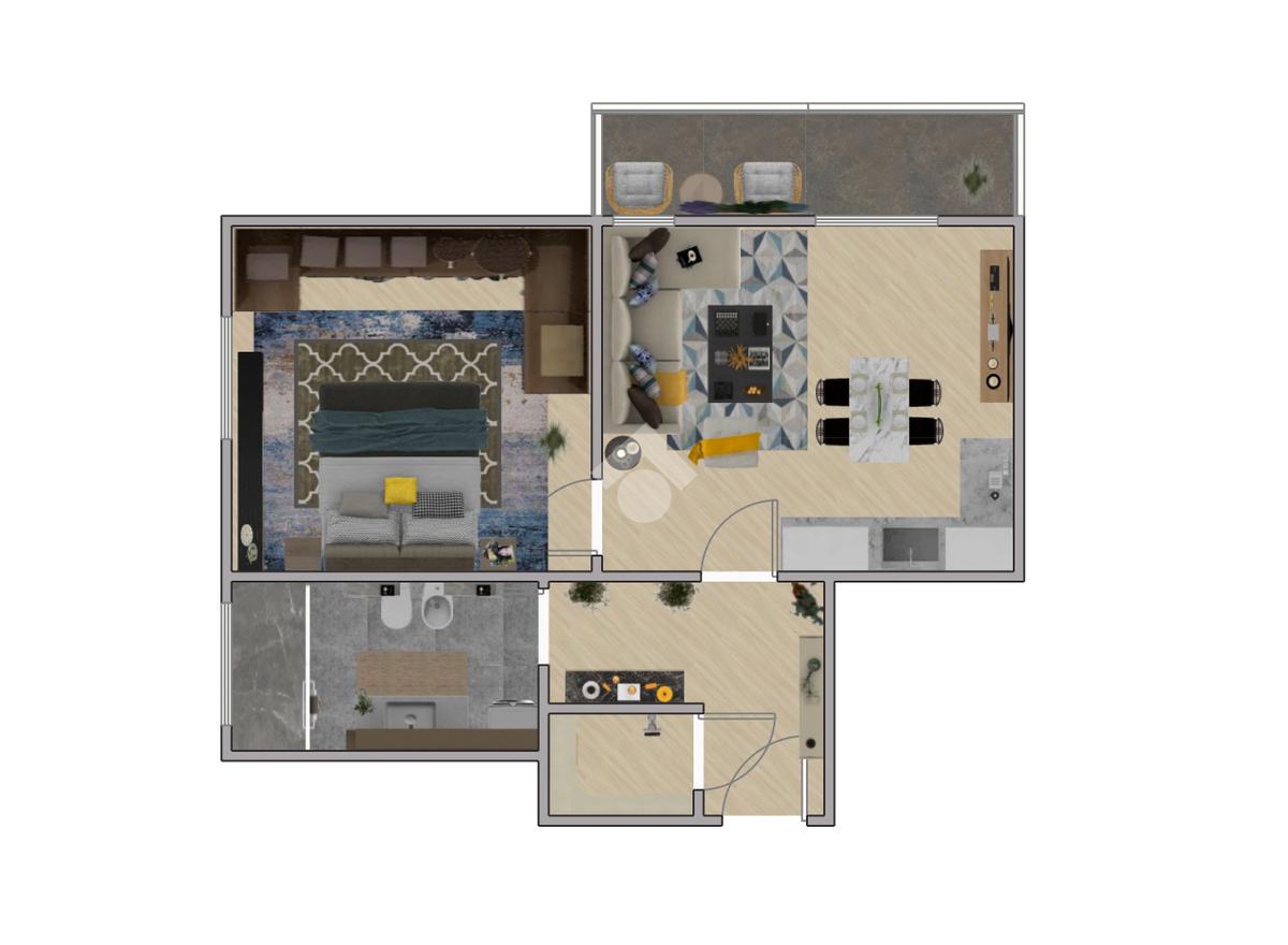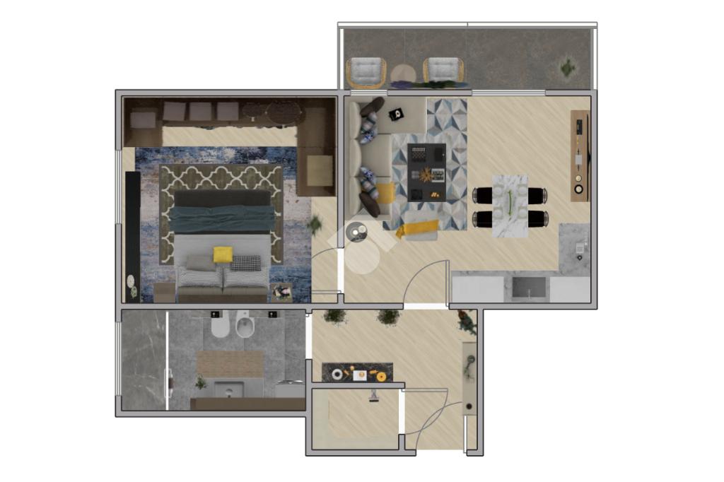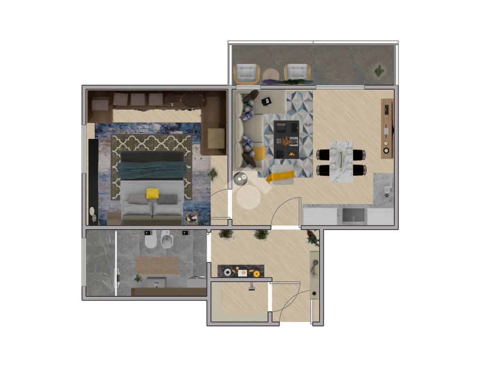 L'appartamento è composto da un ingresso, ampia zona giorno con angolo cottura, camera da letto matrimoniale, bagno finestrato, ripostiglio e balcone .