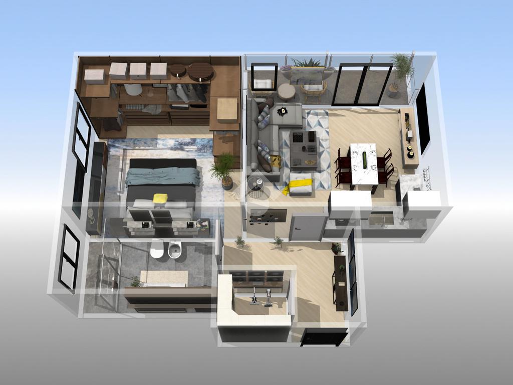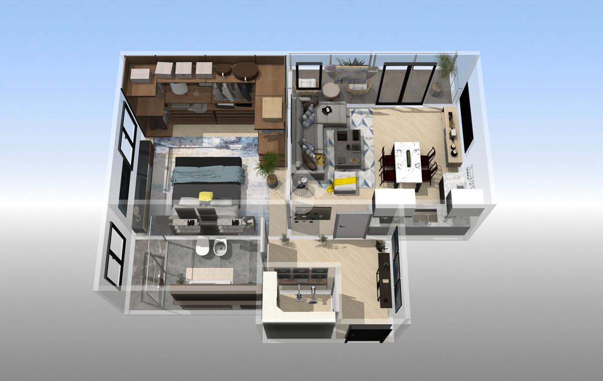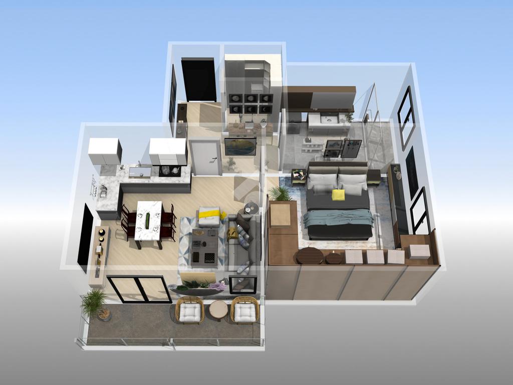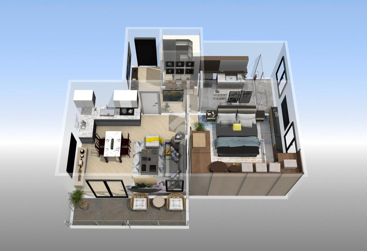 L'appartamento è composto da un ingresso, ampia zona giorno con angolo cottura, camera da letto matrimoniale, bagno finestrato, ripostiglio e balcone .