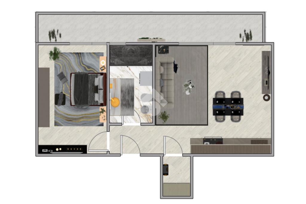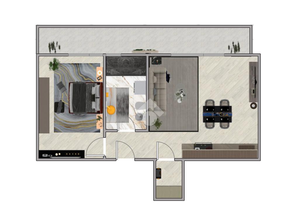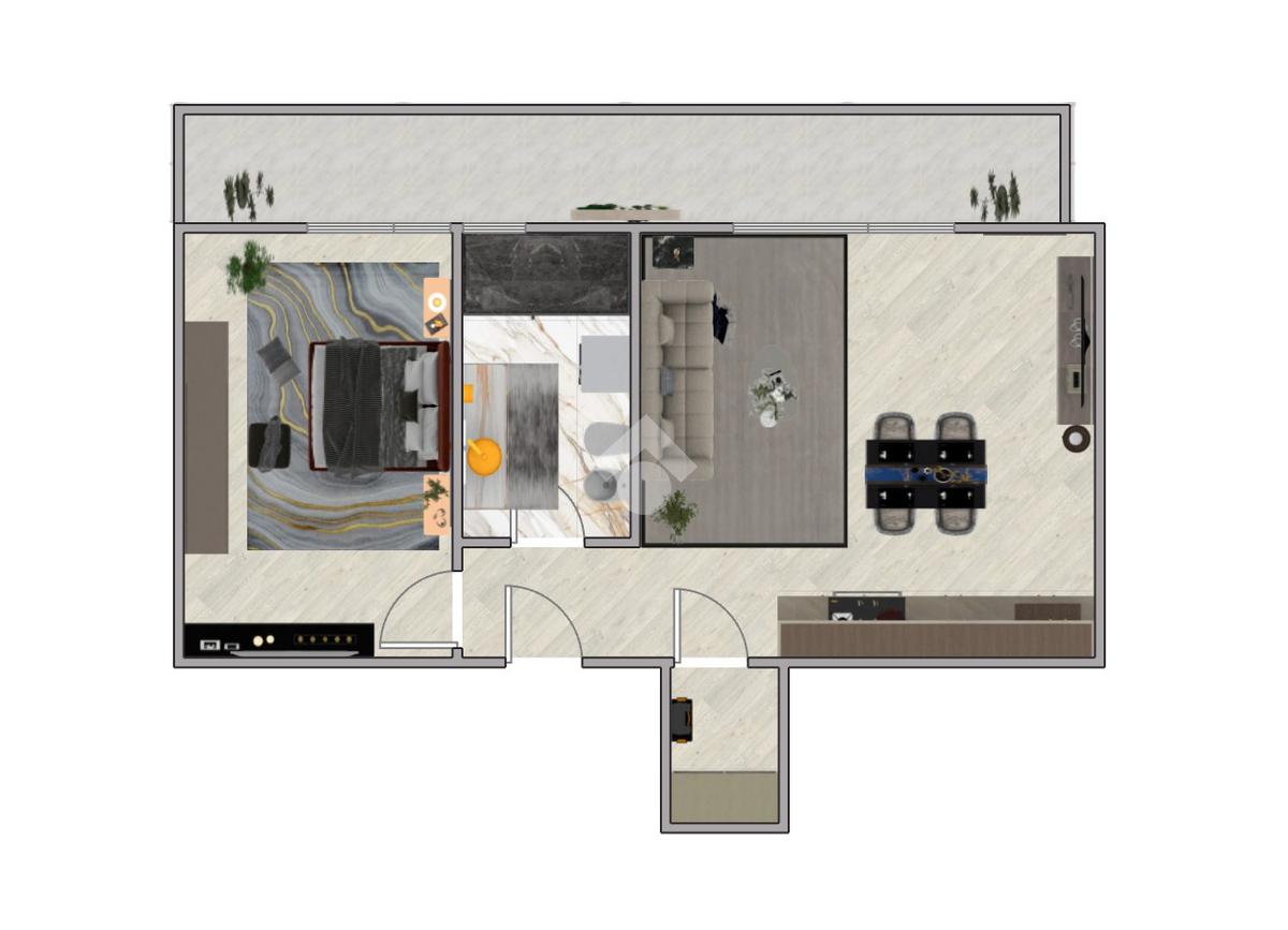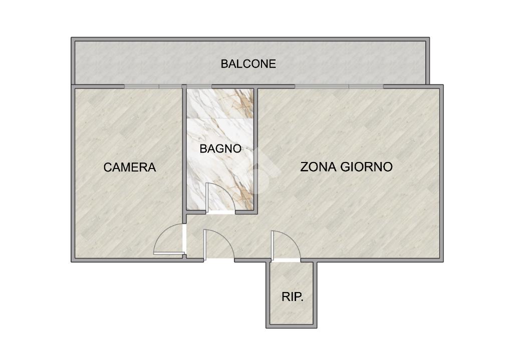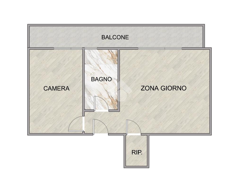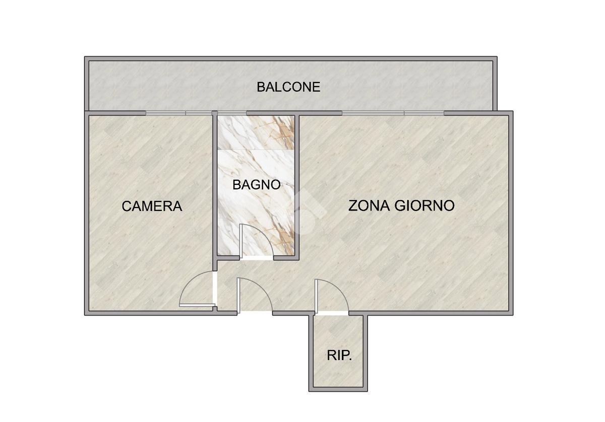 L'appartamento è composto da un ingresso, ampia zona giorno con angolo cottura, camera da letto matrimoniale, bagno finestrato, ripostiglio e balcone .