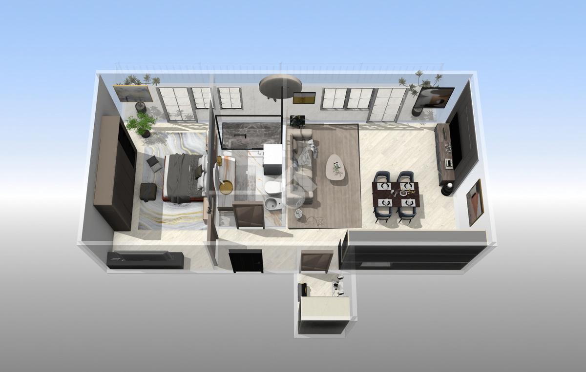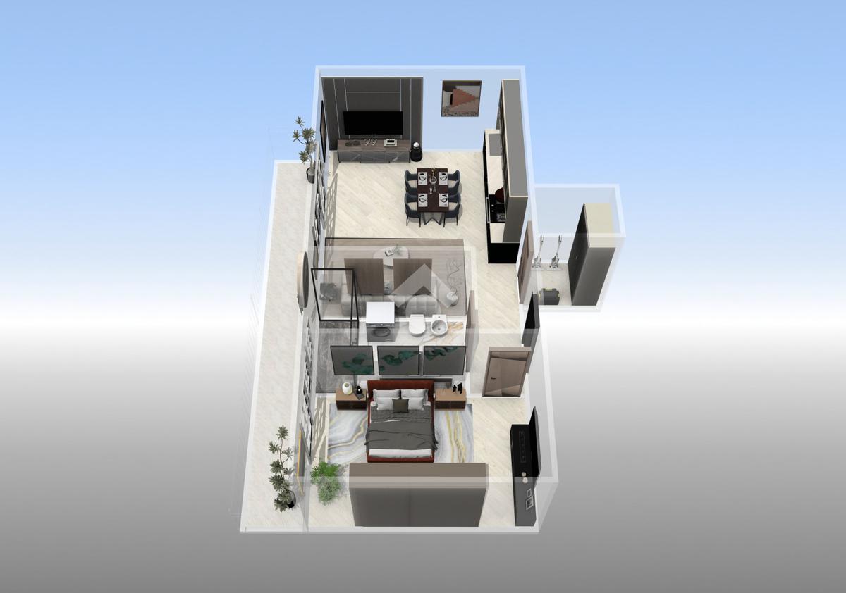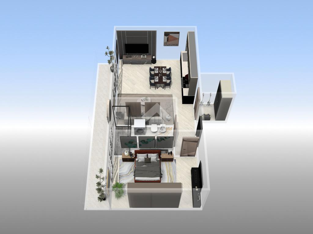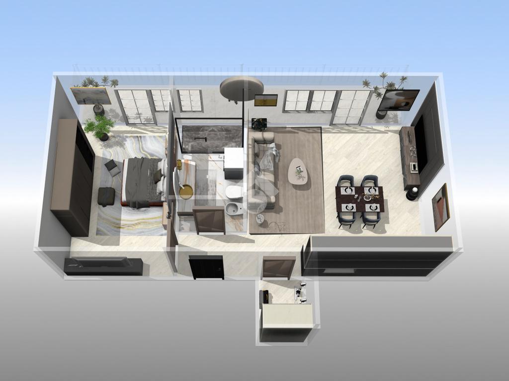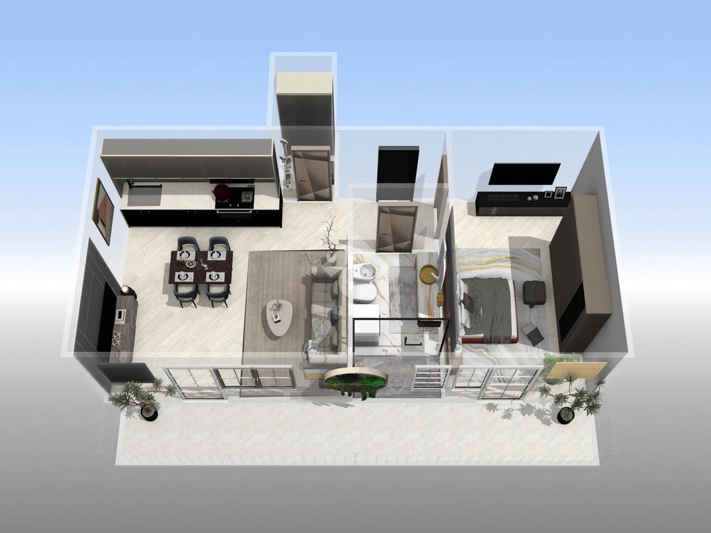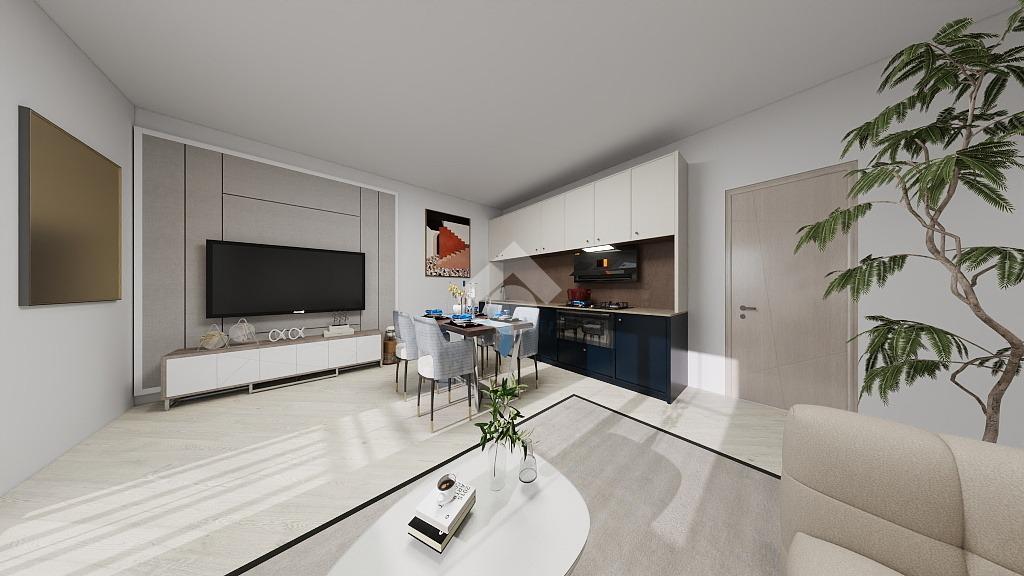 L'appartamento è composto da un ingresso, ampia zona giorno con angolo cottura, camera da letto matrimoniale, bagno finestrato, ripostiglio e balcone .